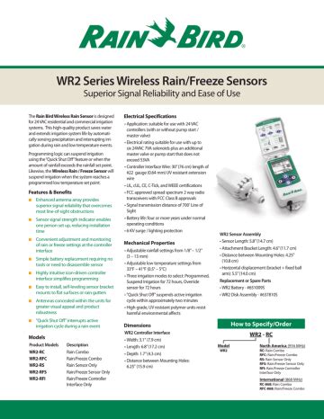 It saves water and extends irrigation system life by automatically sensing. Wr2 accessories pdf manual download. Web explore the rain bird support center to find manuals, literature and videos on current and discontinued rain bird products.